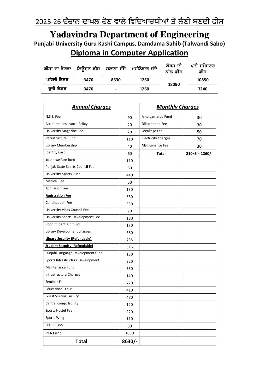 M.A.(Hons.) (Punjabi) -2 Year Course |